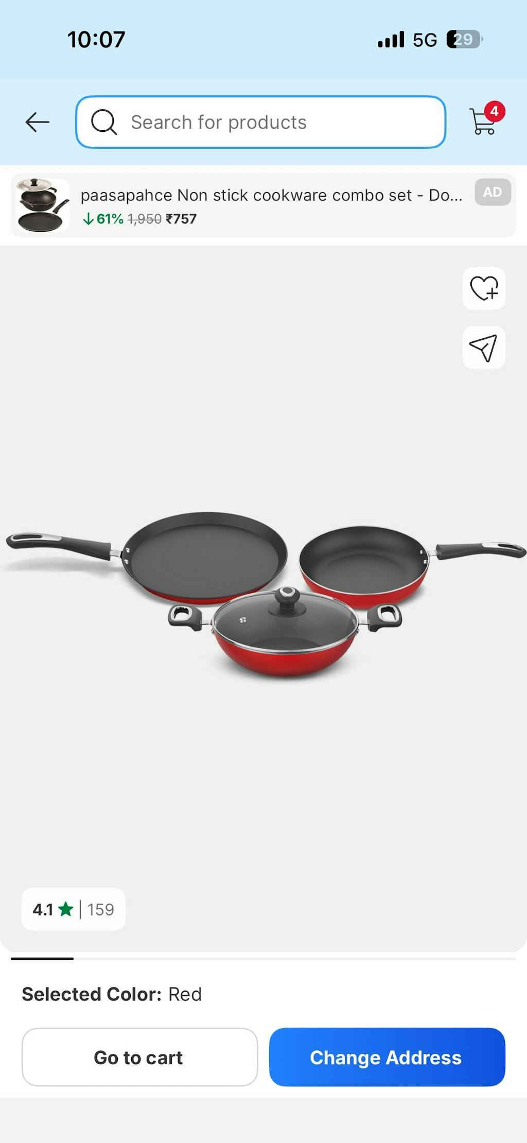 Preethi Dura Collection Non Stick Set, 28 cm Tawa, 26 cm Frying Pan, 26 cm Kadai, With Glass Lid, Gas & Induction Compatible, 5 Star Non Stick Effect, Chilly Red