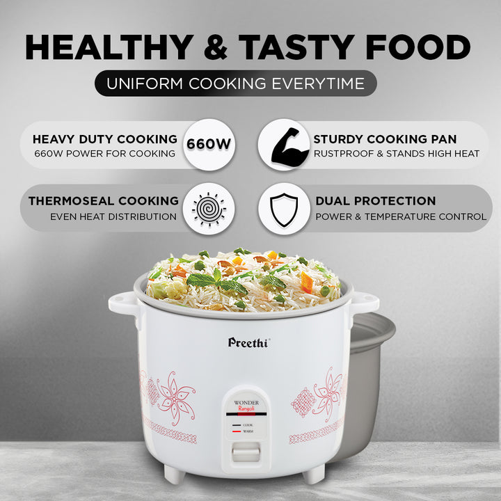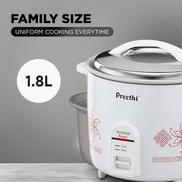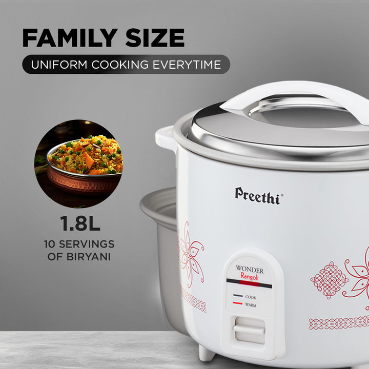 Preethi Electric Rice Cooker, 1.8 Litre, Double Pan, Anodized and Rustproof Aluminium Pan, White (RC 320 A18)