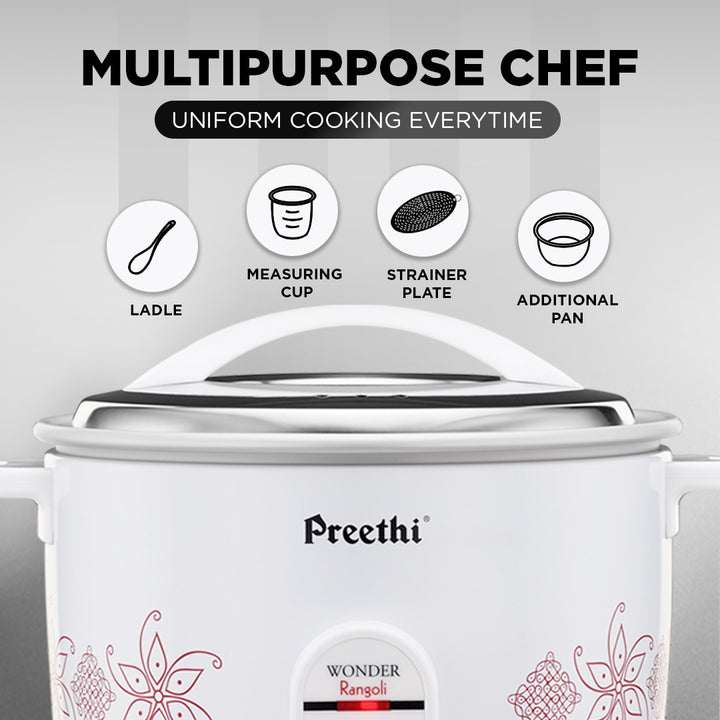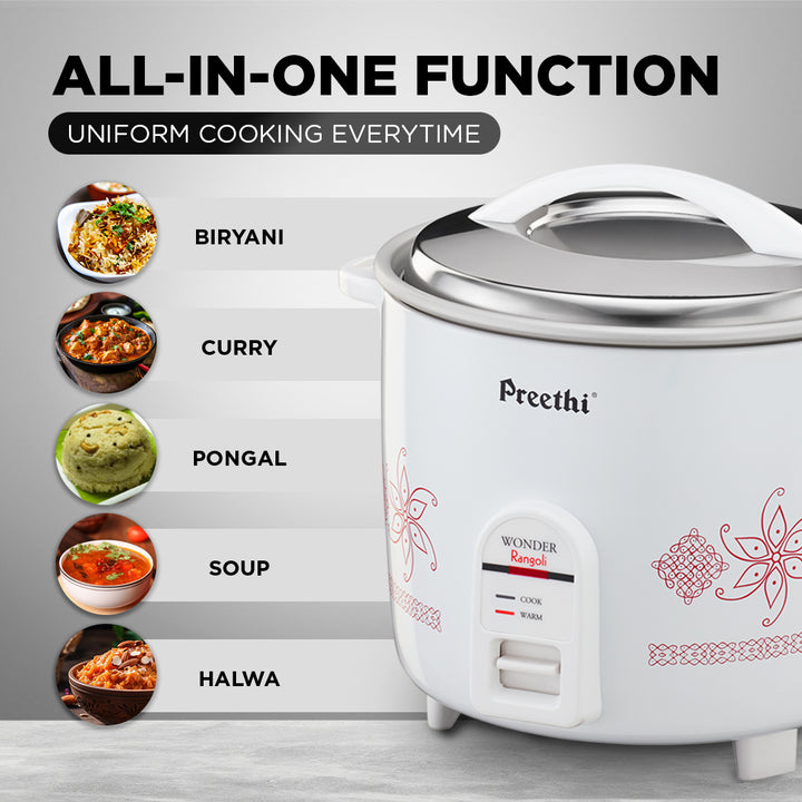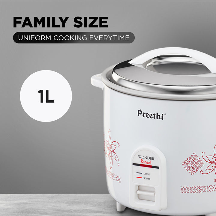 Preethi Electric Rice Cooker, 1 Litre, Single Pan, Anodized and Rustproof Aluminium Pan, White (RC 319)