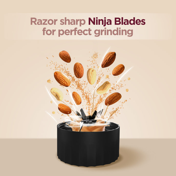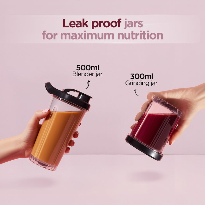 Included Components: | Base nut, 2 jars, 2 set of blades, sipper cap, closing lid |
